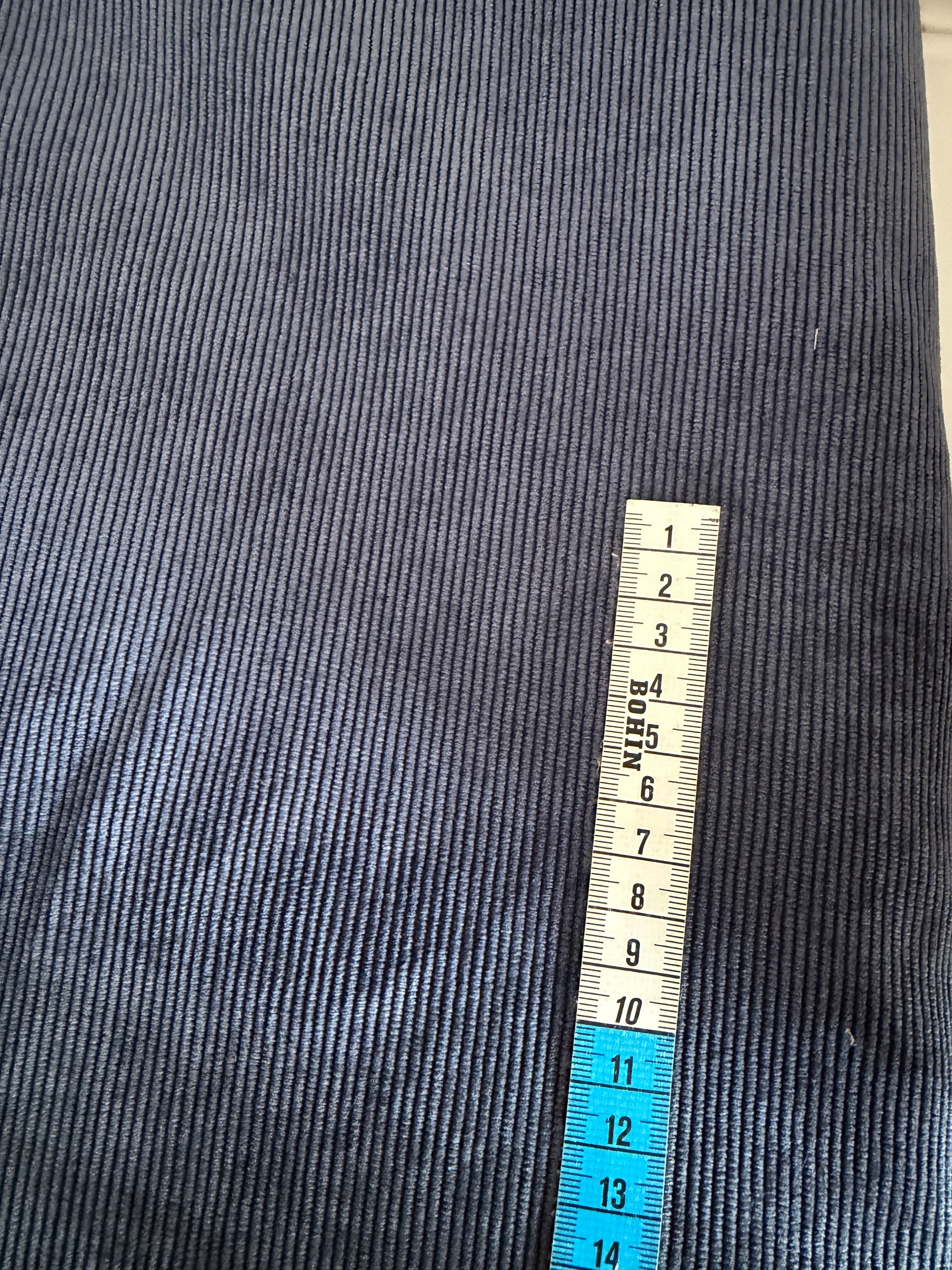 Tissu Velours Bleu Jean (fines côtes) – Coupon de 50 cm